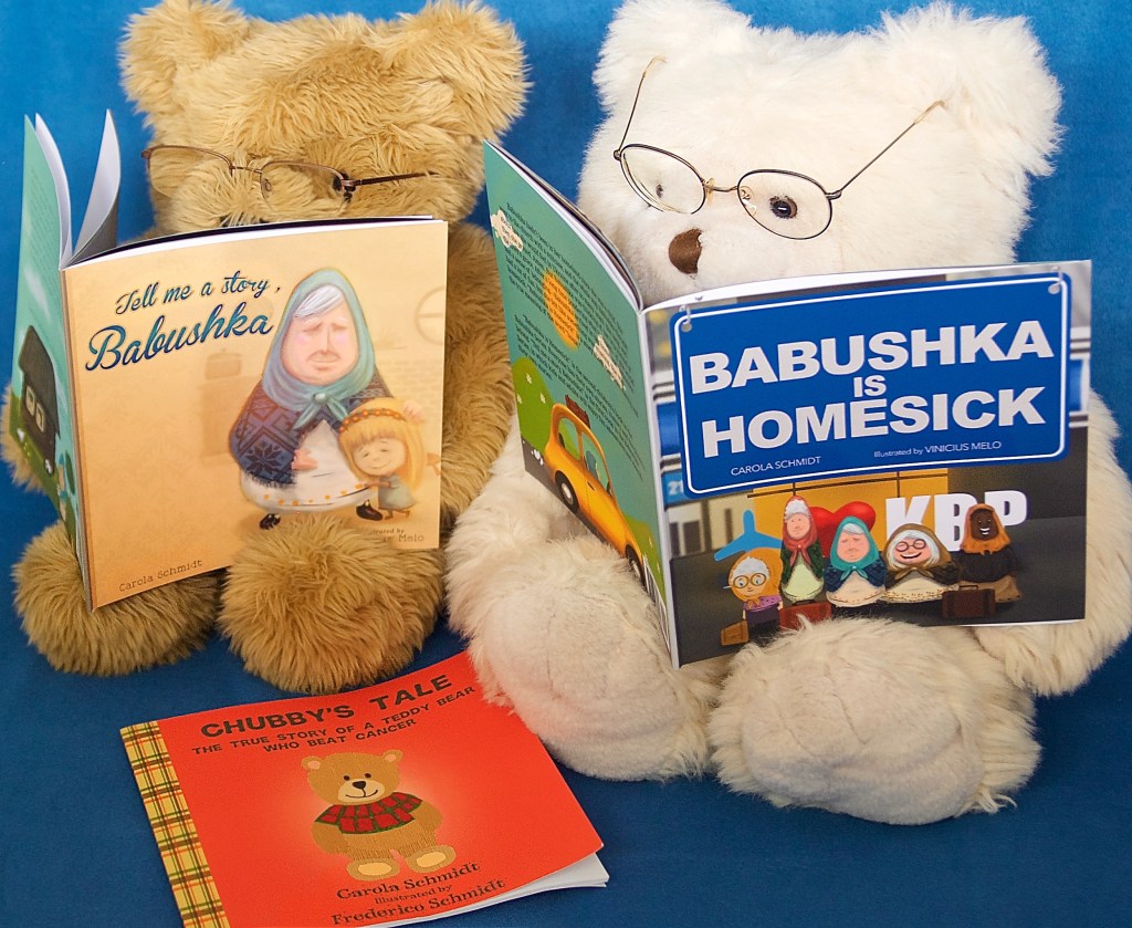 Carola Schmidt is also the author of Tell Me a Story, Babushka and Chubby’s Tale: The true story of a teddy bear who beat cancer.