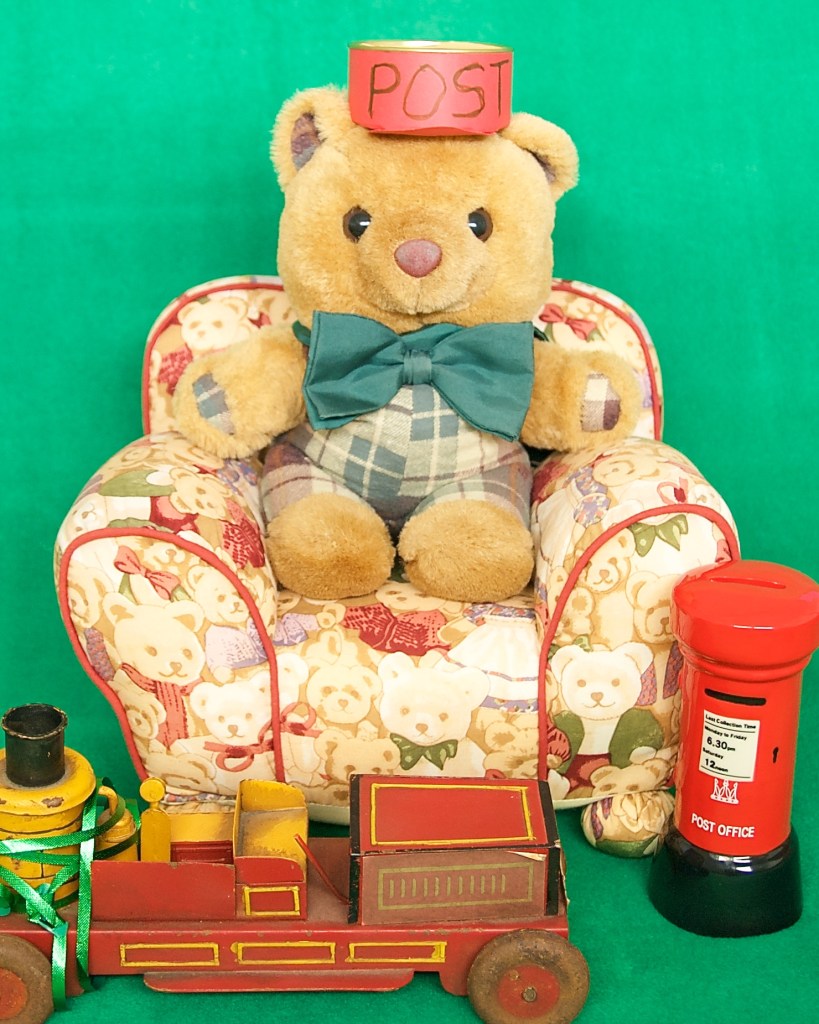 Here’s me with my favourite things. My postie hat and post box and my trusty truck.
