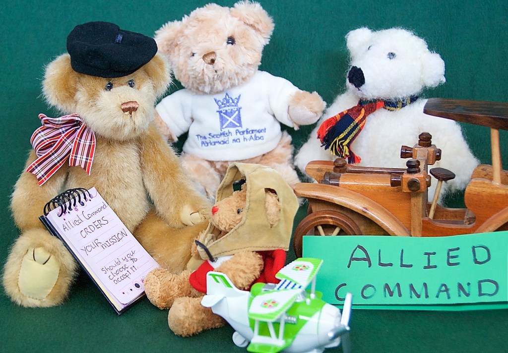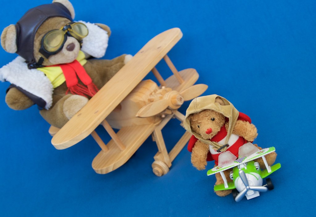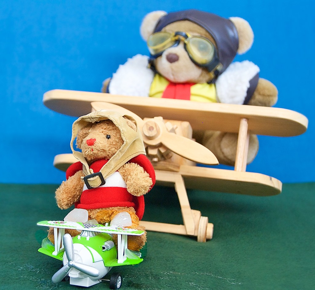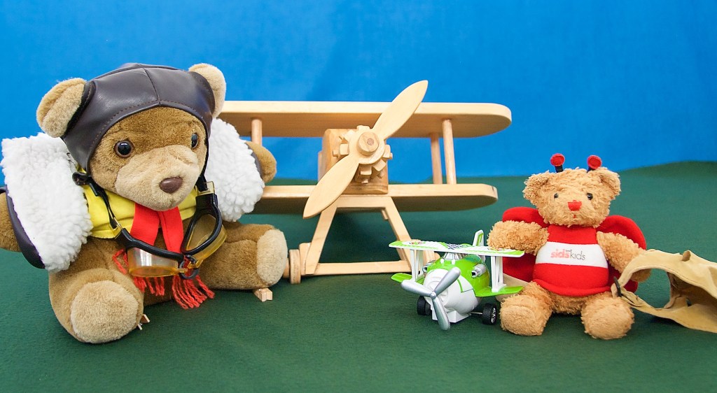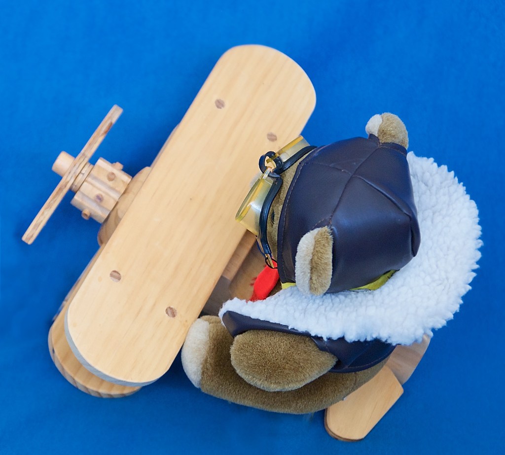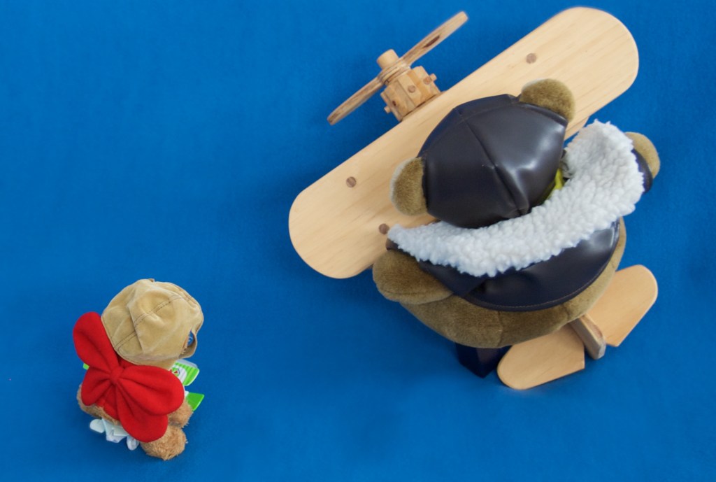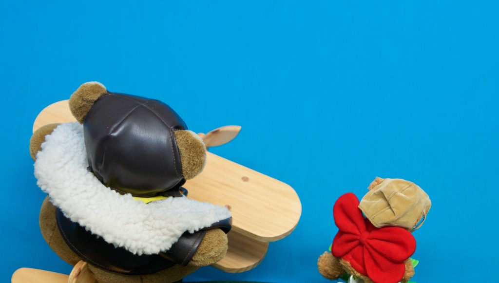 Here we do a version with our own dare devil aviators. BeeBear plays Snoopy’s role and our Flyer Bear has volunteered to be The Ace Baron. Get ready to hum. And …