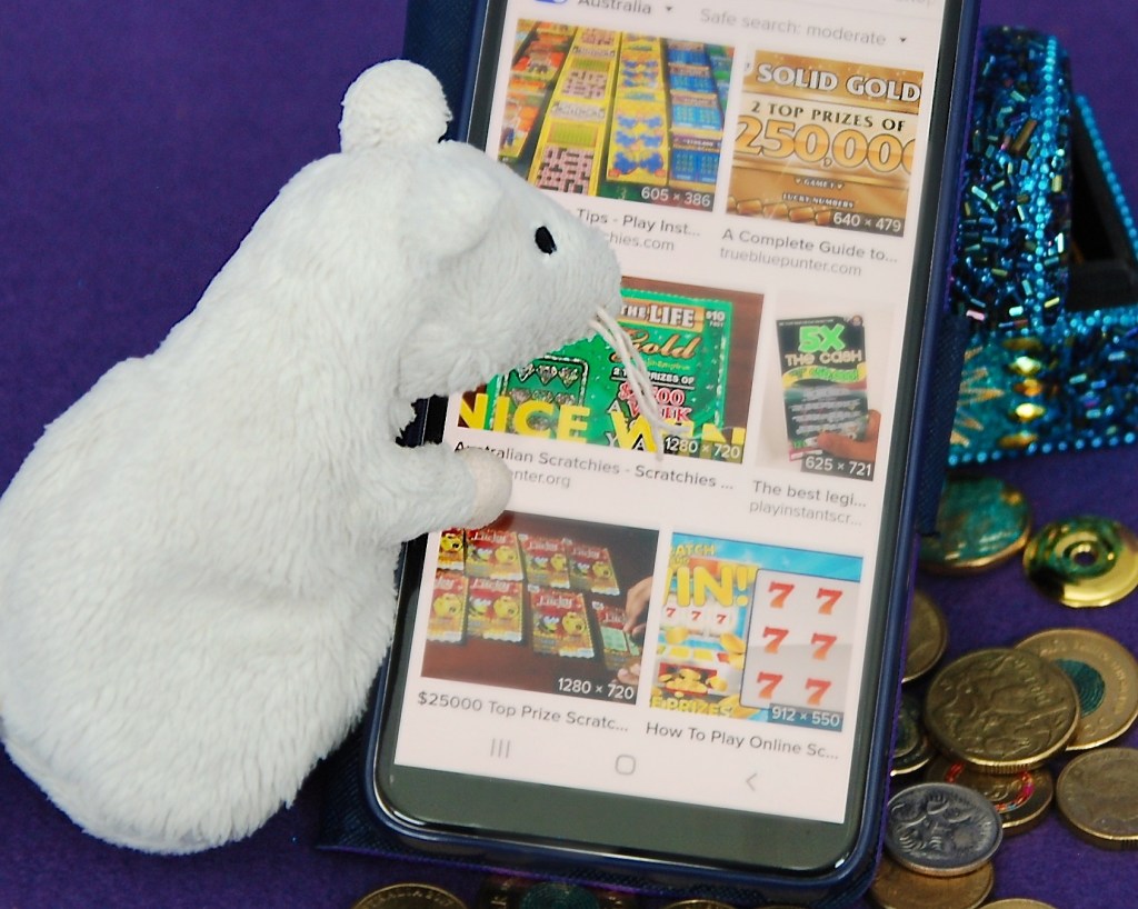 Ratty scritched and Ratty scratched. Easy. This was way more fun than Office Work. As the numbery thingys were revealed, some matched up to some other ones. What did this mean? He took the cardboard back to the place that sold bright bits of cardboard in exchange for treasure. He was given his pieces of treasure back. And he was offered a bit more besides. His investment had been most wise. He could take the extra back to add to the treasure chest. Or, he could get another bit of exciting cardboard. Ooooh, that was a hard choice. What to do? What to do?