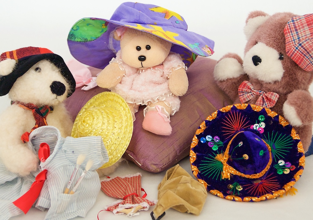 Fellow Baffled Ones, In my book about going on a Quest called, She Ran Away From Love, the heroine, Frilly, insists on taking with her a selection of hats. So the Wardrobe Bears asked her to try on hats.