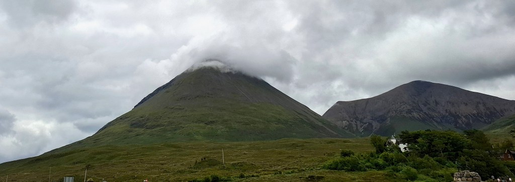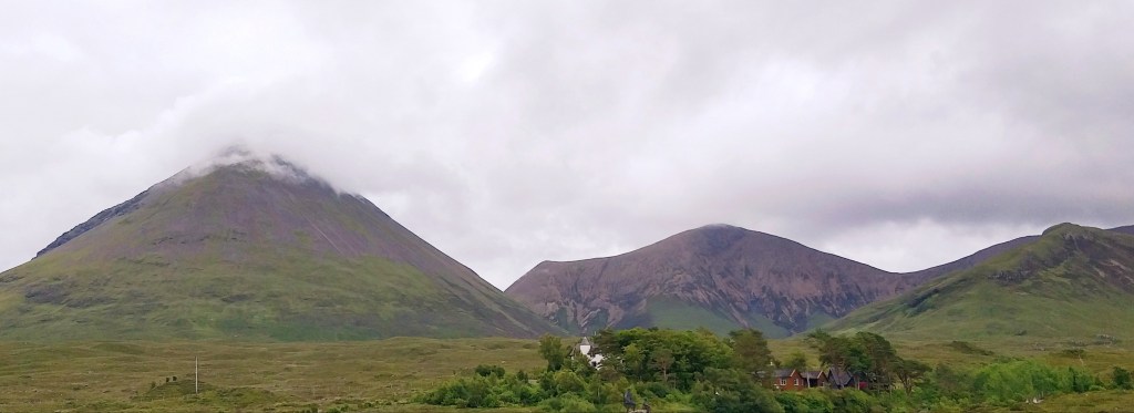 Scotty was fascinated by the landscape of Skye. Great dark volcanic plugs called the Black Cuillin loom up. There are also rugged granite mountains called Red Cuillin.